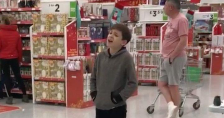 A 10-year-old boy, Calum Courtney, has won a legion of fans after a Facebook video of him bursting into son in an English supermarket went viral.