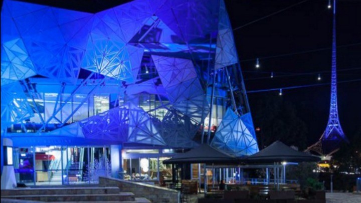 More #Melbourne sites go #UNBlue for @UN’s birthday #UN70 Royal Exhibition Building @unesco https://t.co/fnS52o1Y80 pic.twitter.com/UGarFxFe1B