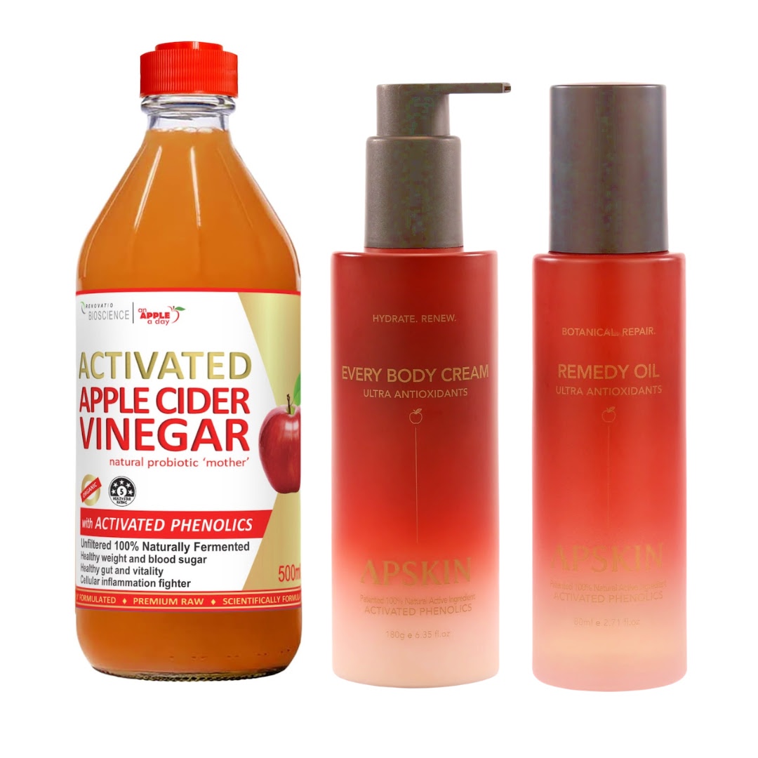 This range works as a simple step routine rather than a single product fix, which often works better for persistent dry heels. Start with the Activated ACV soak in warm water for about 10 to 15 minutes to soften hardened skin so moisture can actually penetrate. Follow with Everybody Cream applied generously to repair and hydrate the barrier. Finish with Remedy Oil to seal everything in overnight, ideally with cotton socks if heels are very dry. The idea is soften, hydrate, then protect. When done consistently it prevents the cycle of cracking returning rather than just treating it repeatedly.