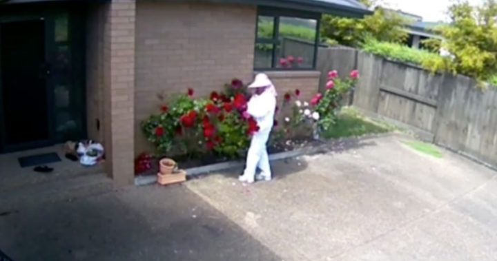 CCTV footage captures the moment the woman casually strolls up the driveway of a home in the small suburb of Rototuna, northern Hamilton, New Zealand.