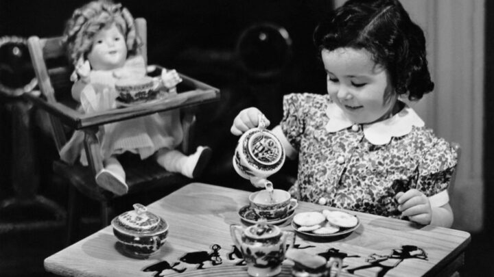 I still have a walking doll, which is nearly as old as I am. Her hair is in the original plaits, and her frock is the same as when my parents gave her to me, now a bit faded. Aren’t we all? But our childhood is full of happy memories of tea parties with my sisters and our dolls.