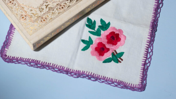 Bigger ones for men’s noses, were usually very masculine with a stripe or tartan pattern to make them a bit fancy. And women’s ones were smaller, and usually floral or lace-edged or sometimes even monogrammed. And the children’s ones were usually simpler as we would lose them – covered with nursery rhymes or pictures of kittens and puppies.