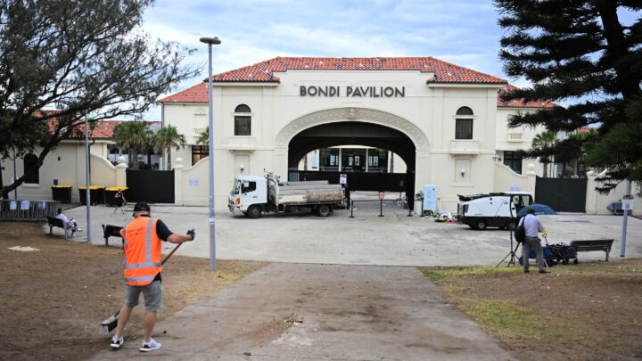 Reams of flowers, photographs and messages have been cleared away from outside Bondi Pavilion and surrounding walkways following Sydney’s anti-Semitic terror attack on December 14.