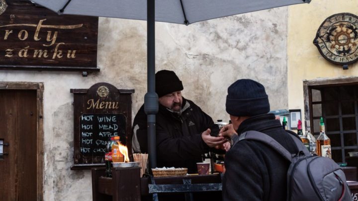 We were fortunate to be in Cesky Krumlov at Christmas and were treated to Christmas market stalls in the cobblestone paved Main Square including, of course, copious quantities of mulled wine. There are friendly vendors everywhere in the Square and they all speak English — well, at least enough to sell you their yummy mulled wine. But the highlight for me was indeed Christmas carols performed by the local school children and beautifully sung in no less than four languages!