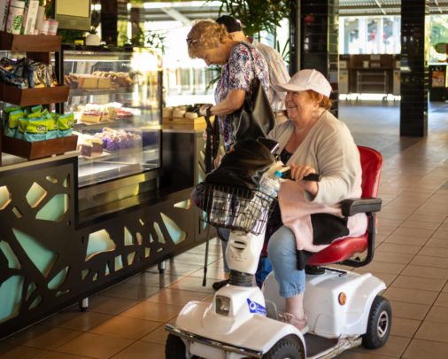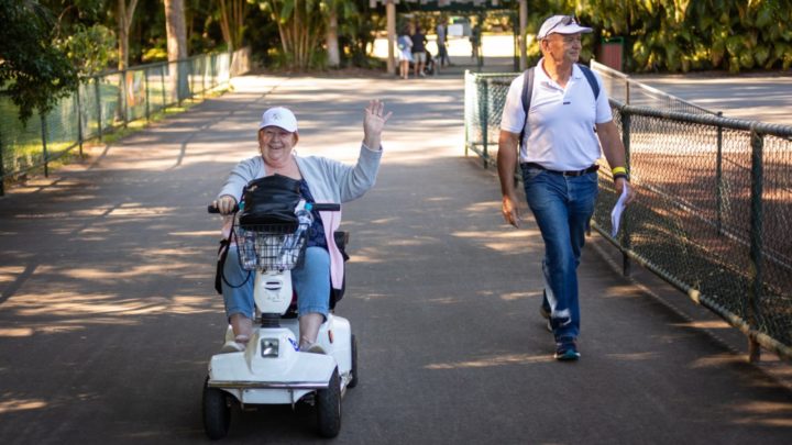 My sister claimed her best birthday present was the mobility scooter because she could keep up with the group and see the full extent of the zoo. It also made our day better knowing that she was independent and not getting exhausted — in fact we had to keep up with her (which delighted her no end)! All in all, our day to Australia Zoo was totally enhanced by the availability of the mobility scooter.