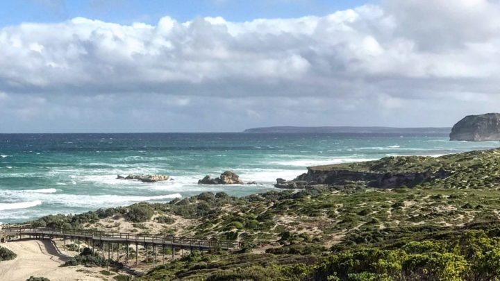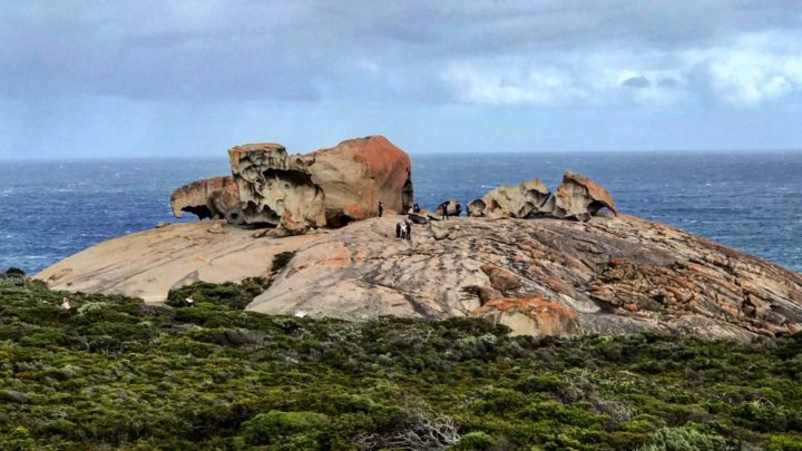 While we were visiting Seal Bay on our first day, the weather had turned cold and windy. The sea lions were hiding under the tourist boardwalk and we decided it was better to give them a miss so as to avoid being blown away. We had to be happy with our views of the native colony at the lookout. Also from the lookout we could see the Remarkable Rocks, one of the island’s signature landmarks perched above the sea in Flinders Chase National Park.