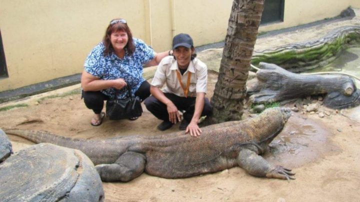 It was while I was admiring a large Komodo by the name of Beamer that its keeper asked if I would like to pat him. Oh my gosh! I decided to throw caution to the wind and climbed into the enclosure with the carer to pat the beast.