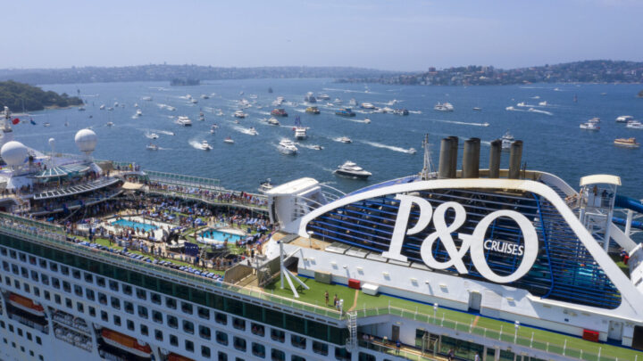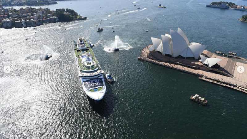 P&O’s Pacific Explorer was the first ship to hit Australian waters since the pandemic, sailing into Sydney Harbour’s Circular Quay on April 18, met with a celebration of water canons and a large banner won across the ship that read “WE’RE HOME”.