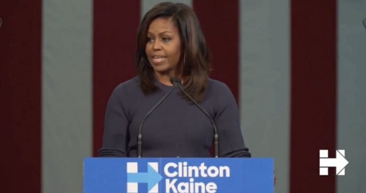 Standing in front of a room full of hundreds of people, Michelle spoke for 25 minutes about Donald Trump’s lewd remarks about women and his bragging about groping and touching them whenever he wanted.