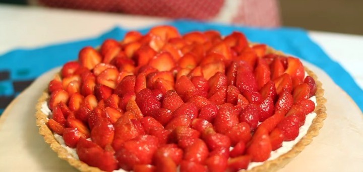3. Preheat oven to 160C/140C fan-forced. Spoon the filling into the tart shell. Bake for 30 minutes or until set (but still slightly wobbly). Turn off the oven and cool the cake in the oven with the door ajar. Chill the cake for 3 hours.